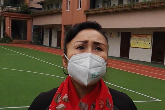“首先,進(jìn)行升旗儀式,請全體肅立,奏唱國歌!”……伴隨著國歌聲,視頻里站在國旗下戴著口罩的校長張吉惠淚目了。
