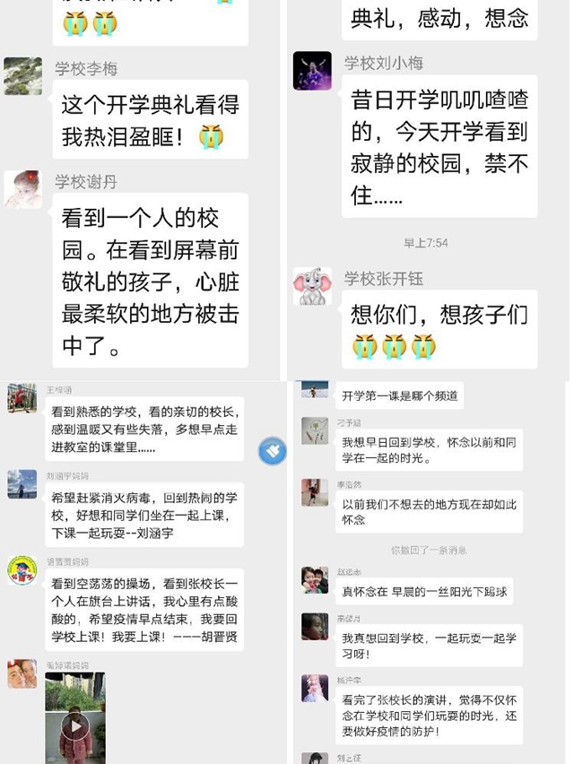 “看到空蕩蕩的操場,看到張校長一個(gè)人在旗臺上講話,我心里酸酸的,希望疫情早點(diǎn)結(jié)束,我要回學(xué)校上課!”同學(xué)胡晉賢通過媽媽的手機(jī)留言道。許多老師和家長也紛紛留言:這場升旗儀式看得我熱淚盈眶。