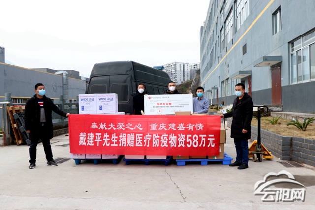 重慶建盛投資集團(tuán)有限公司董事長(zhǎng)戴建平、總經(jīng)理熊文都是在外創(chuàng)業(yè)的云陽人。1月24日,他們得知家鄉(xiāng)防控物資短缺的情況后,幾乎是徹夜難眠。大年初一,戴建平組織召開視頻會(huì)議布置了馳援家鄉(xiāng)的事宜,率先為云陽捐贈(zèng)50萬元現(xiàn)金,同時(shí)又和熊文一起,開始動(dòng)用所有的人脈資源緊急采購防護(hù)物品。隨著全國(guó)疫情阻擊戰(zhàn)的打響,醫(yī)用物資開始出現(xiàn)緊缺,熊文說,采購?fù)局凶畲蟮睦щy就是全國(guó)物資緊缺,這一批物資動(dòng)用了極大的人力和財(cái)力,集團(tuán)四處聯(lián)系資源,甚至發(fā)動(dòng)海外的朋友來收集。