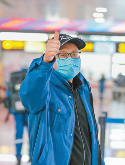 醫(yī)療隊隊員出發(fā)時加油鼓勁。
