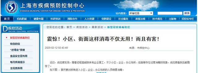 據(jù)上海市疾控中心官網(wǎng)消息,近日,隨著返程高峰到來和企業(yè)復(fù)工,不少小區(qū)、企業(yè)、辦公場(chǎng)所、街面等存在過度消毒的現(xiàn)象。