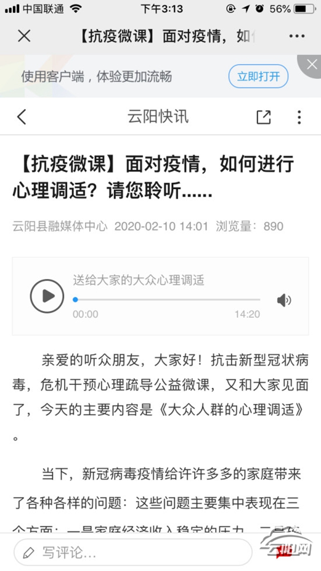 為加強(qiáng)心理疏導(dǎo),2月3日,縣婦聯(lián)成立云陽縣危機(jī)干預(yù)心理咨詢工作組,面向全縣機(jī)關(guān)事業(yè)單位職工、醫(yī)護(hù)人員、社區(qū)工作者、廣大婦女及家庭提供危機(jī)干預(yù)服務(wù),由3名著名的心理咨詢師任督導(dǎo)老師,廣泛招募13名專業(yè)心理咨詢師志愿者作為工作組成員,建立線上咨詢平臺(tái),開設(shè)危機(jī)干預(yù)服務(wù)。自工作組成立以來,線上已接診案例5例。同時(shí),縣婦聯(lián)還積極整合資源,與重慶市心理咨詢師協(xié)會(huì)云陽工作站積極籌備錄制《新型冠狀病毒感染下的肺炎疫情心理健康指導(dǎo)公益微課》,截止目前,已錄4期課程,閱覽量達(dá)37011人次。