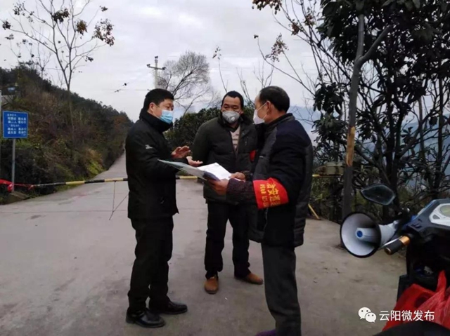 平安鎮(zhèn)位于云陽最西端,人車流動大。作為平安鎮(zhèn)疫情防控工作領(lǐng)導(dǎo)小組雙組長之一,陳啟云主動擔(dān)當(dāng)起戰(zhàn)斗一線的指揮調(diào)度任務(wù),帶領(lǐng)全鎮(zhèn)11名網(wǎng)格長300名網(wǎng)格員上前線、查源頭、守陣地。從1月22日起,陳啟云一直穿著那件醒目的黃色安監(jiān)外套,戰(zhàn)斗在深入排查、蹲點守卡、執(zhí)勤巡查、跟蹤服務(wù)的第一線。每天早上,他在單位院壩給當(dāng)天戰(zhàn)斗的同志作戰(zhàn)前動員。他用家鄉(xiāng)話、貼心話錄制宣傳音頻,將聲音傳遞到每家每戶。全鎮(zhèn)每一起“白事”活動,都是他親自帶隊上門宣傳。在場鎮(zhèn)、在鄉(xiāng)村、在農(nóng)戶,他堅持用車載擴音器親自喊話,勸阻群眾扎堆聚集,用身邊的案例教育引導(dǎo)群眾。