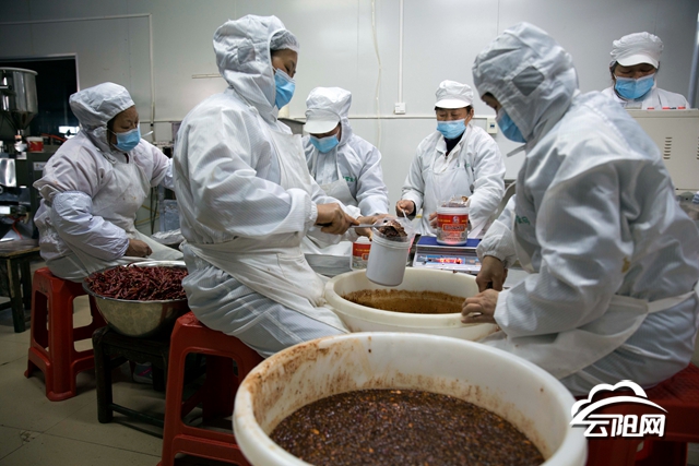 2月17日,云陽(yáng)宏霖食品股份有限公司工人在廠房?jī)?nèi)翻曬辣椒醬、包裝佐料、熟食產(chǎn)品等,產(chǎn)品銷往廣州、上海、重慶等地。