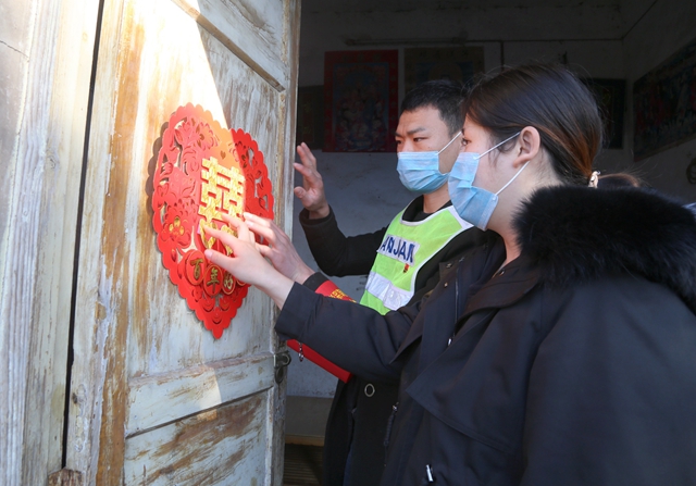 面對形勢嚴峻的疫情,周永祥與葉群協(xié)商,毅然決定取消婚禮,挨個跟親朋好友打電話解釋。隨后,周永祥就去鎮(zhèn)里把他的新娘接回了家中,兩人就算是完婚了。顧不上陪伴新婚妻子,周永祥在家里就坐不住了。原來,隨著疫情的蔓延,小水村全面開始疫情防控工作,看到村干部一直堅守在疫情防控第一線,周永祥心急如焚?!败娙说奶炻毦褪潜<倚l(wèi)國,作為一名黨員和軍人,關(guān)鍵時刻我必須站出來,我想報名當志愿者?!彼⒓锤嬖V妻子葉群自己的決定。對此,善解人意的葉群很支持:“去吧,戰(zhàn)士就是要上戰(zhàn)場!”