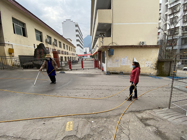 全面消毒有奇招,工具來(lái)自百姓家。長(zhǎng)洪社區(qū)聘請(qǐng)12人,租用2臺(tái)小車負(fù)責(zé)整個(gè)社區(qū)全面消毒工作,預(yù)計(jì)完成三輪地毯式消毒,目前已完成1輪,正在進(jìn)行第2輪。為高效完成消毒作業(yè),社區(qū)工作人員向本社區(qū)農(nóng)業(yè)種植戶借用農(nóng)藥噴撒用具,雙管齊下。首先采用本地農(nóng)用長(zhǎng)管式霧化噴槍,其由四根長(zhǎng)約200米的細(xì)管組成,2人協(xié)作可從社區(qū)主干道延伸至各個(gè)小道實(shí)施道路網(wǎng)面式播撒消毒水;其次針對(duì)無(wú)法觸及的死角,采用小型背式混合噴霧壺進(jìn)行查漏補(bǔ)缺。