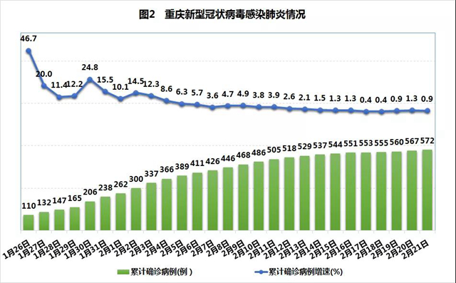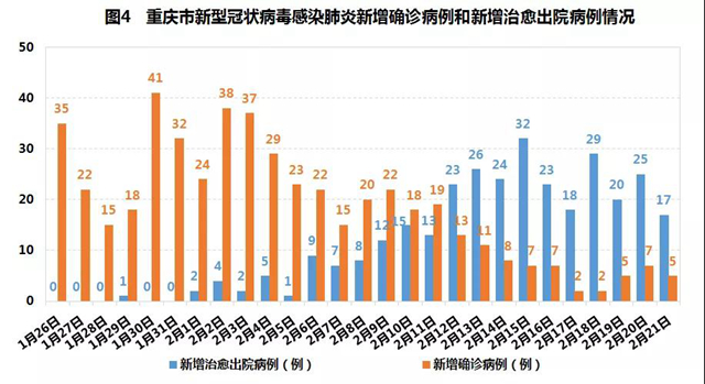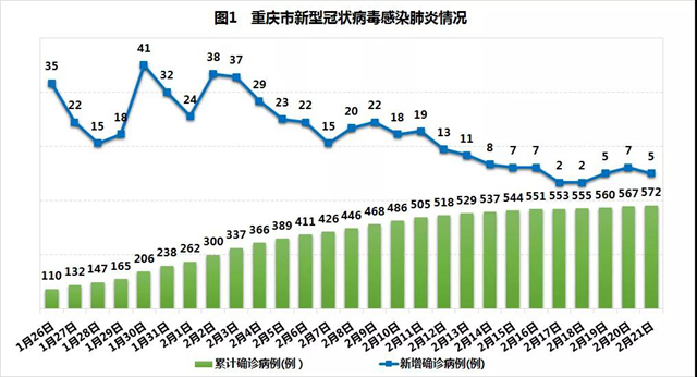 夏沛介紹,2月21日0-24時,重慶報告新冠肺炎新增確診病例5例,新增治愈出院病例17例。截至2月21日24時,重慶現(xiàn)有在院確診病例250例,累計死亡病例6例,累計治愈出院病例316例,累計報告確診病例572例。確診病例較多的區(qū)縣分別是萬州區(qū)118例、江北區(qū)28例、云陽縣25例,北碚區(qū)、南川區(qū)尚未有病例。