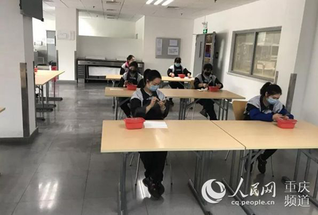 復(fù)工復(fù)產(chǎn)后員工必須分開就餐,圖為重慶博澤汽車部件有限公司。重慶高新區(qū)供圖