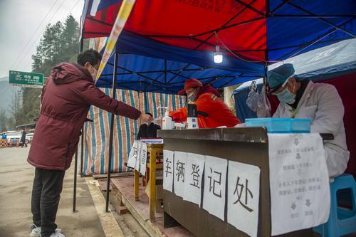 ▲2月14日,萬(wàn)州區(qū)龍駒鎮(zhèn),萬(wàn)州與利川交界的蘇拉口卡點(diǎn),由公安、交通、衛(wèi)生、交警等部門組成的聯(lián)防聯(lián)控隊(duì)伍正在對(duì)來往車輛、人員疫情檢查并登記。記者 龍帆 攝