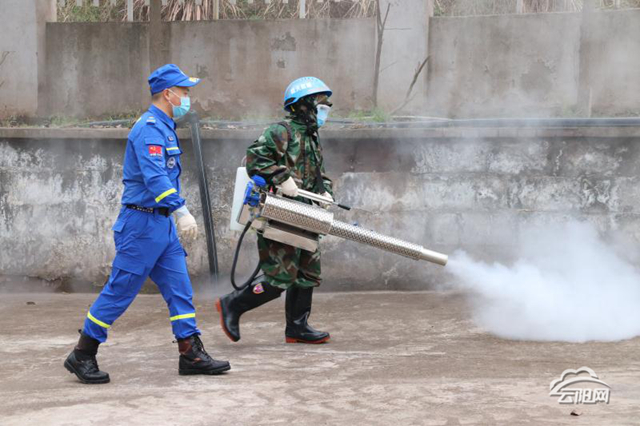 當(dāng)天上午,藍(lán)天隊(duì)員們前往重慶市和桓建材有限公司,到達(dá)企業(yè)廠房后,隊(duì)員們將攜帶的84消毒液和清水按比例混合,裝入噴灑儀器,對(duì)企業(yè)的生產(chǎn)車間、辦公場所等區(qū)域進(jìn)行了全方位、無死角的消毒作業(yè)。