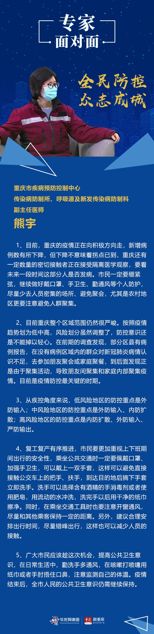 華龍網(wǎng)-新重慶客戶端2月25日16時(shí)訊(記者 邱小雅)疫情數(shù)字下降是否表示拐點(diǎn)已到?低風(fēng)險(xiǎn)區(qū)域是不是等于零風(fēng)險(xiǎn)?今(25)日,華龍網(wǎng)-新重慶客戶端記者采訪了重慶市疾病預(yù)防控制中心傳染病防制所、呼吸道及新發(fā)傳染病防制科副主任醫(yī)師熊宇,來看她是怎么說的。