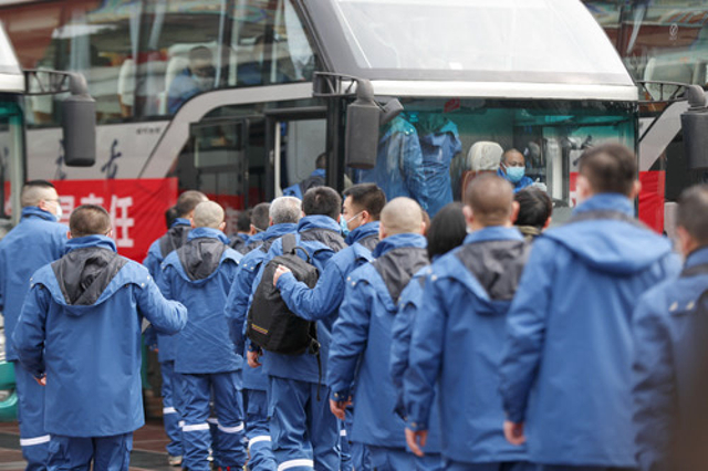 ↑2月11日,重慶對口支援湖北孝感醫(yī)療隊隊員登車前往重慶江北國際機場。新華社發(fā)(黃偉 攝)
