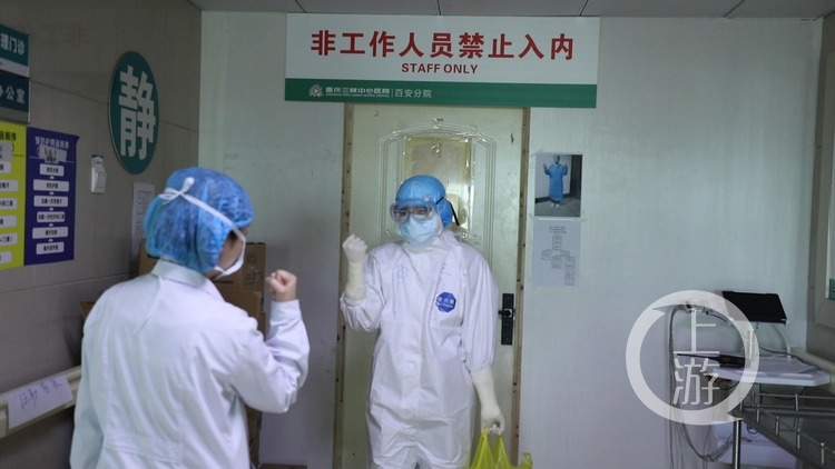 連續(xù)幾天里,面對即將進入隔離病房的同事背影,她堅定地舉起右手緊握拳頭喊“加油”,轉(zhuǎn)身又投入忙碌當中。