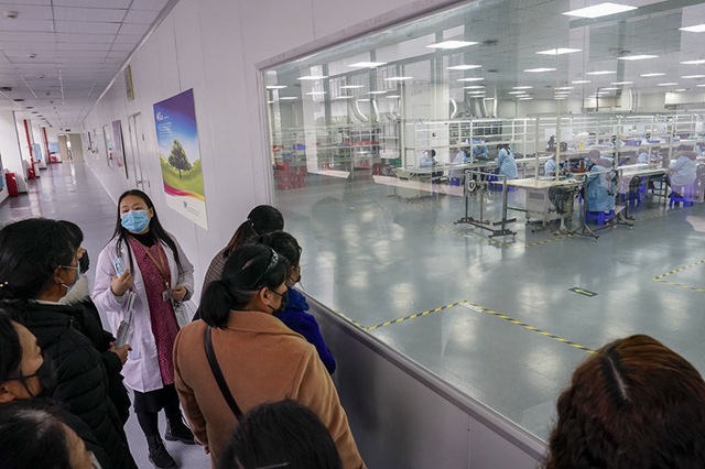↑2月27日,秀山縣工業(yè)園區(qū)一家電子企業(yè)生產車間,求職者參觀了解工作崗位情況。新華社記者 劉潺 攝