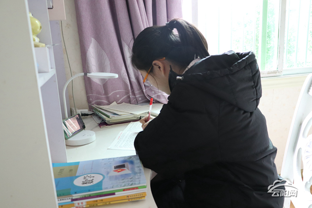 在初二中學生田語歡的家里,記者看到正在上課的她一邊聽課一邊記筆記?!白蛱煳覀冾I(lǐng)到了新課本,老師按照課本內(nèi)容為我們上課,線上學習和以前有很大區(qū)別。線上學習更能培養(yǎng)我們的自律,在教學軟件的監(jiān)督下,我們很好地完成老師布置的作業(yè),提高了學習效率。”田語歡說,每天的課程除了文化課,音樂課、體育課也會上,就連課間操和眼操也沒落下,學習健身一如往常,在家也過著充實的學習生活。