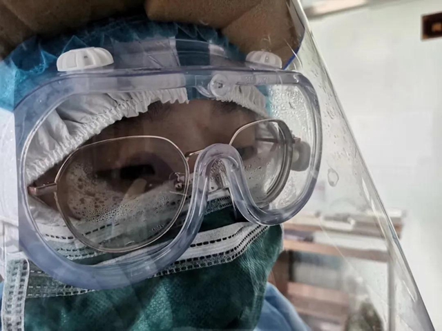 作為臨床醫(yī)生,錢奎每天負(fù)責(zé)查房、診療、處置突發(fā)、安撫病人情緒等工作,穿著密不透風(fēng)的防護(hù)服,在病房一干就是4個(gè)多小時(shí)。