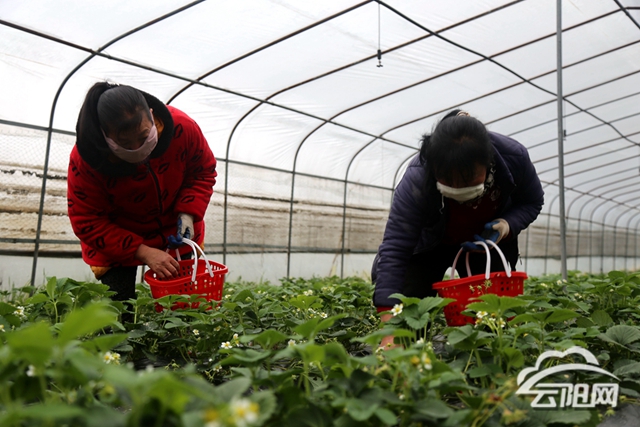 云陽網(wǎng)訊(記者 鄭紅均 朱學(xué)徽)3月3日,記者在鳳鳴鎮(zhèn)陽之鳳生態(tài)采摘園看到,一顆顆鮮紅的草莓已經(jīng)掛滿,2名工人帶著口罩、提著籃子正在大棚內(nèi)采摘草莓。