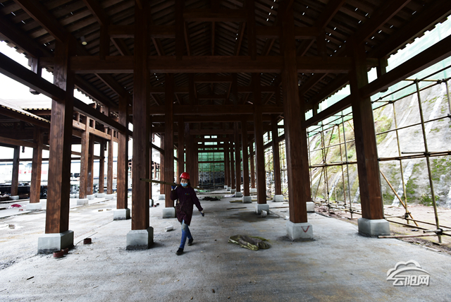 仿古建筑者們在云陽張飛廟風清街施工工地勞動,為爭取這條民俗街早日建成開放而奮戰(zhàn)。