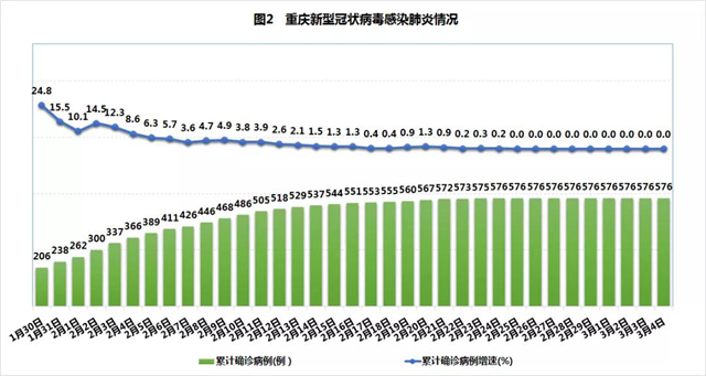 夏沛介紹,3月4日0—24時,重慶無新冠肺炎新增確診病例,新增治愈出院病例12例。截至3月4日24時,重慶現(xiàn)有在院確診病例68例,累計死亡病例6例,累計治愈出院病例502例,累計報告確診病例576例。累計排除3523例疑似病例,尚有2例正在排查中。累計追蹤到密切接觸者23612人,已解除醫(yī)學觀察23318人,尚有294人正在接受醫(yī)學觀察。4個集中救治醫(yī)院現(xiàn)收治患者68例。
