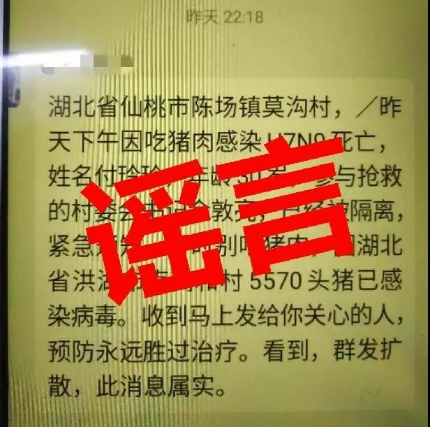 近日,網(wǎng)傳“湖北省仙桃市陳場鎮(zhèn)居民因吃豬肉感染H7N9死亡”,引發(fā)了網(wǎng)友廣泛關(guān)注。