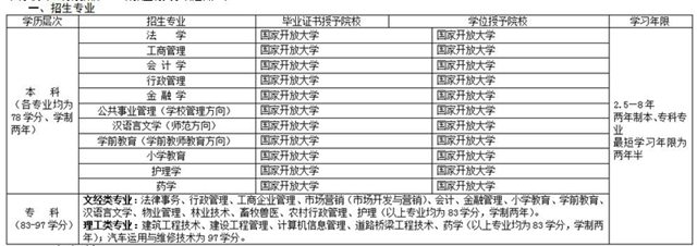 國家開放大學的本科、??聘鲗I(yè)實行“入學水平測試、擇優(yōu)注冊”的招生辦法入學。實行“學分制業(yè)余學習”。春、秋兩季招生,為有志成才的人士提供入學機會?,F(xiàn)將我校2020春招生有關事項通告如下: