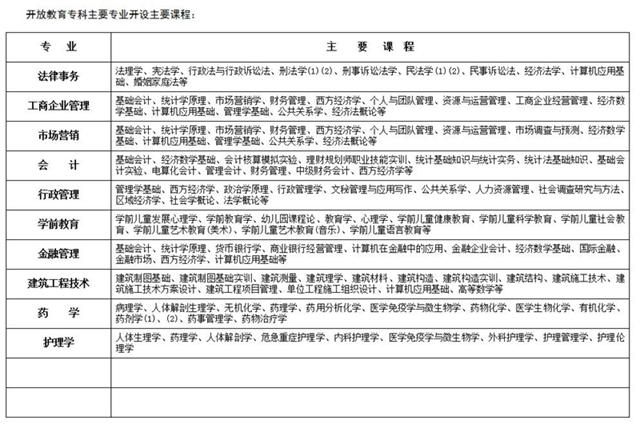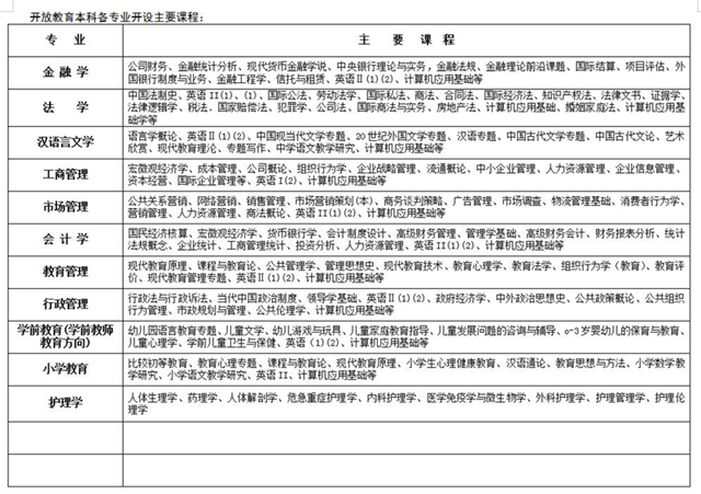 五、課程設置與考試:各專業(yè)教學計劃中的必修課程由國家開放大學統(tǒng)一開設,其它課程由重慶電大組織教學與考試。