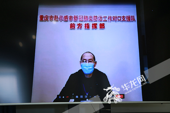 陳懇視頻連線介紹重慶市支援孝感醫(yī)療隊(duì)前線工作情況。華龍網(wǎng)-新重慶客戶端記者 李裕錕 攝