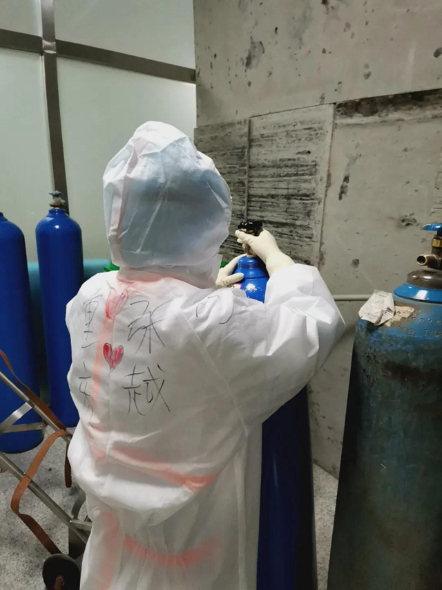 在韓輝容一次值夜班時(shí),一名患者需要輸氧,但由于醫(yī)院條件限制,只能用氧氣罐。一瓶氧氣大概重110斤,比她的體重還要重,普通人根本抱不動(dòng)。搬它?抱著走?滾著走?最后,韓輝容還是決定用“拖”,當(dāng)有患者說幫她一起拖時(shí),她想都沒想就拒絕了。面對(duì)病人的治療需要,再大的困難都必須克服!韓輝容靠著單薄的身體,一步一步地把氧氣罐拖進(jìn)病房,穿著全套防護(hù)服的她,大口大口喘氣,護(hù)目鏡里的霧凝成了水珠,從鏡片上劃了下來。當(dāng)看著患者用上氧氣的那一刻,所有的苦和淚都消失了。