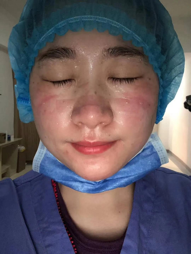 3月2日,對(duì)韓輝容來說是特別難忘的一天。她從中午12點(diǎn)進(jìn)入病房,下午4點(diǎn)出病房,短短4個(gè)小時(shí),因?yàn)榇┲鴥蓪痈綦x衣和一層不透氣的防護(hù)服,加上對(duì)工作不熟悉,大大增加了她的工作難度,來來回回跑了幾個(gè)樓層,包裹在嚴(yán)嚴(yán)實(shí)實(shí)的防護(hù)服下,跑起來都特別費(fèi)勁,護(hù)目鏡起霧到已看不見前面的路,中間幾次因?yàn)榇贿^氣來而暫停手中工作,汗水早已浸濕了她的衣服,心率上升到只能聽見自己砰砰砰的心跳聲和喘氣聲……即使這樣,她也咬緊牙關(guān),一步一步地完成了所有的工作。