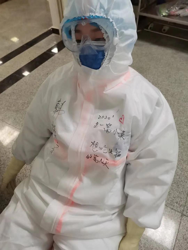 當(dāng)天晚上8點(diǎn),當(dāng)韓輝容用盡最后的力氣脫掉防護(hù)服的那一刻,她覺得自己活過來了,隨后緩慢地走出醫(yī)院,就在這時(shí),她轉(zhuǎn)身對(duì)著醫(yī)院大門大聲喊著:“我不怕你,病毒!一定可以打敗你!”