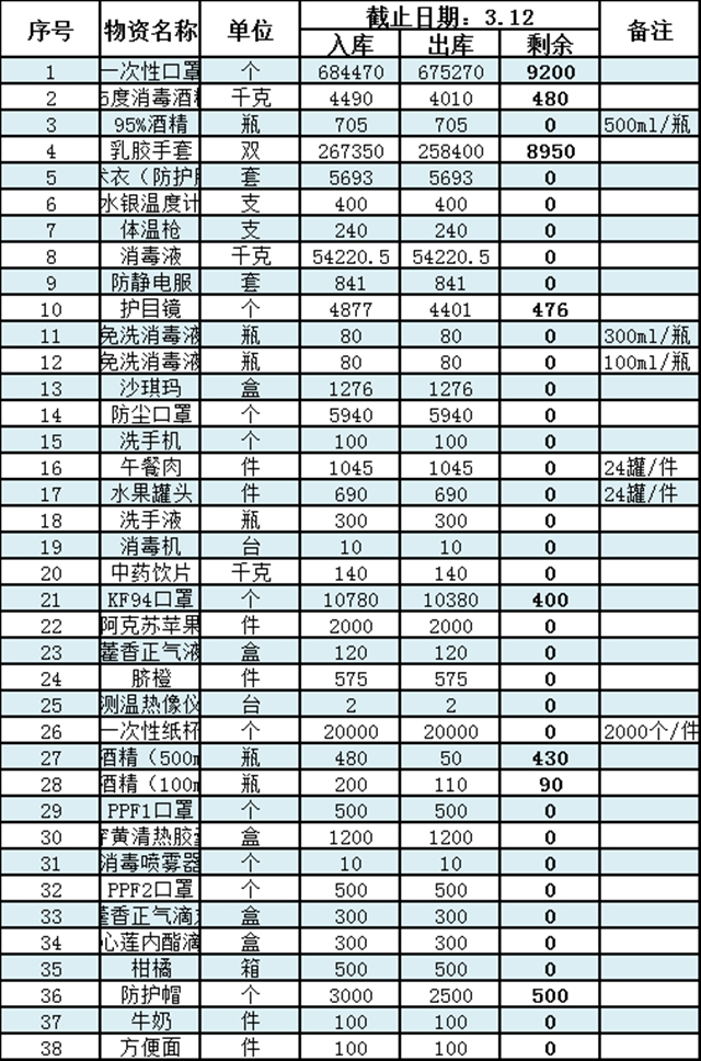 3、經(jīng)信委接收的醫(yī)療物資及發(fā)放累計(jì)匯總表