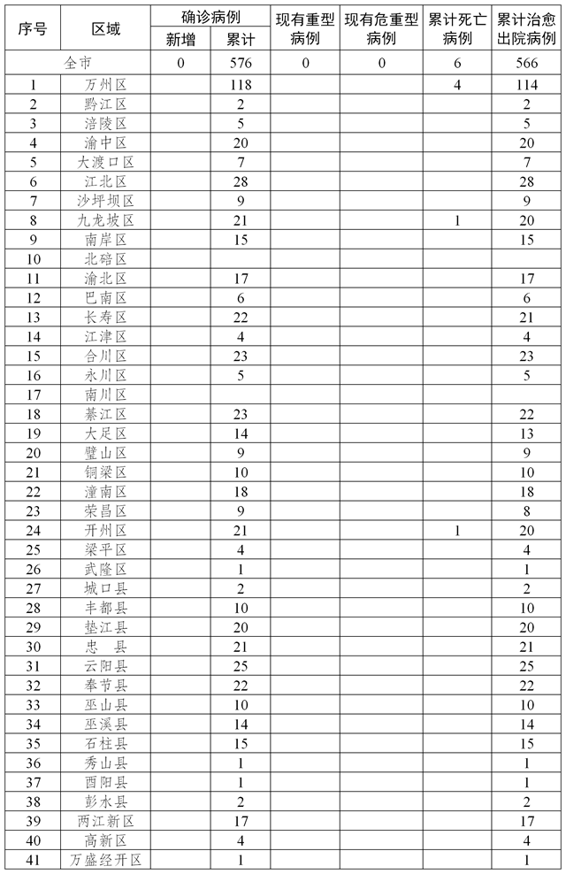 新增治愈出院病例為長壽區(qū)2例。