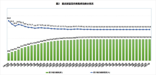 市衛(wèi)生健康委通報,3月13日0—24時,重慶無新冠肺炎新增確診病例報告,新增治愈出院病例2例。截至3月13日,現(xiàn)有在院確診病例4例(無重型和危重型病例),累計死亡病例6例,累計治愈病例566例,累計報告確診病例576例。累計排除3532例疑似病例,現(xiàn)無疑似病例待排查。累計追蹤到密切接觸者23688人,已解除醫(yī)學(xué)觀察23606人,尚有82人正在接受醫(yī)學(xué)觀察。