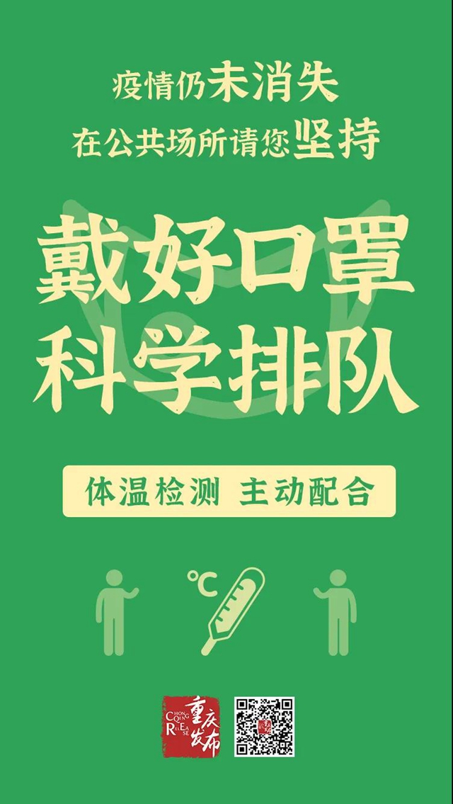 專家認(rèn)為,重慶所有區(qū)縣連續(xù)18日無新增確診病例,現(xiàn)有在院確診病例為零的區(qū)縣增至37個,疫情防控形勢持續(xù)向好。但境外疫情快速發(fā)展,外防輸入工作面臨新的挑戰(zhàn);隨著逐步復(fù)工復(fù)產(chǎn)復(fù)市,人員流動和聚集增加帶來的疫情傳播風(fēng)險仍然存在。