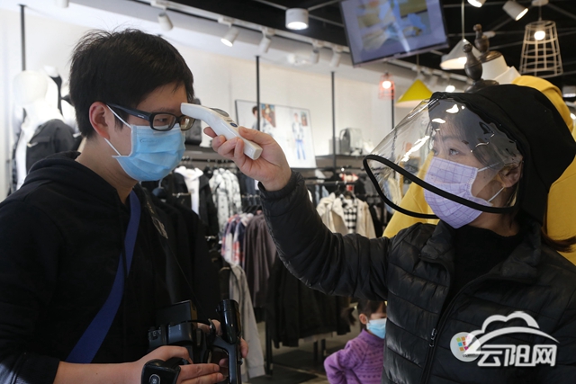 三福時尚云陽店是云江大道的一家百貨店。記者剛走進(jìn)店門,一名店員就拿著額溫槍走上前來為記者測體溫。測完后,再用裝著酒精的噴瓶朝記者手上噴了幾下,以便給手部消毒滅菌。“我們首先要求員工要做好自我防疫措施,定時更換口罩,并對他們每天測兩次體溫和登記信息,門店的消毒也不會低于三次的。同時,我們會給進(jìn)店顧客進(jìn)行體溫監(jiān)測,避免發(fā)熱發(fā)燒的顧客進(jìn)入門店。”三福時尚云陽店店長柳莉說。