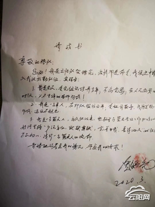 在賀皓亮的請(qǐng)戰(zhàn)書(shū)中寫道:“我是一名黨員,受組織培養(yǎng)多年,不忘黨恩,在人民群眾需要幫助時(shí),義不容辭理應(yīng)奮勇向前?!辟R皓亮是一名退伍軍人,也是孩子的父親、父母的寶貝兒子?!拔业拿恳粋€(gè)身份都告訴我,我必須向前。我希望能給兒子樹(shù)立一個(gè)好榜樣?!辟R皓亮眼神里充滿堅(jiān)定。