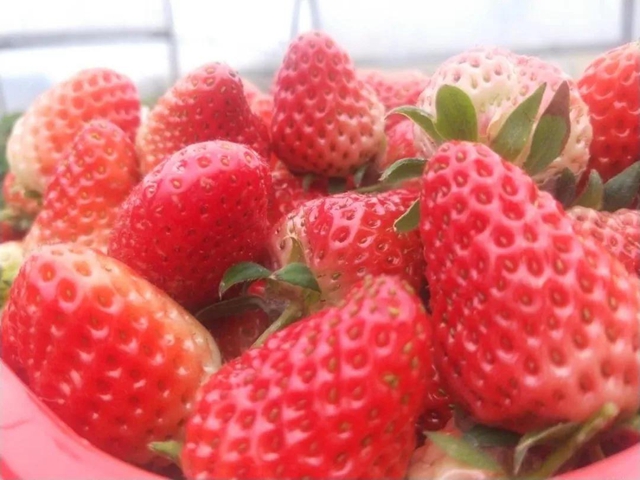 該園共有16個草莓大棚,其中有紅顏、紅玉、巧克力、牛奶等8個品種,采摘價格每公斤100元,2.5公斤200元,采摘期將持續(xù)到四月底。