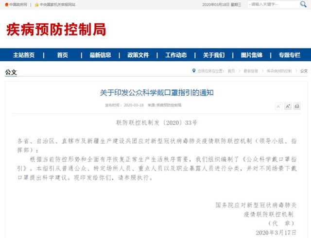關(guān)于印發(fā)公眾科學(xué)戴口罩指引的通知聯(lián)防聯(lián)控機(jī)制發(fā)〔2020〕33號(hào)