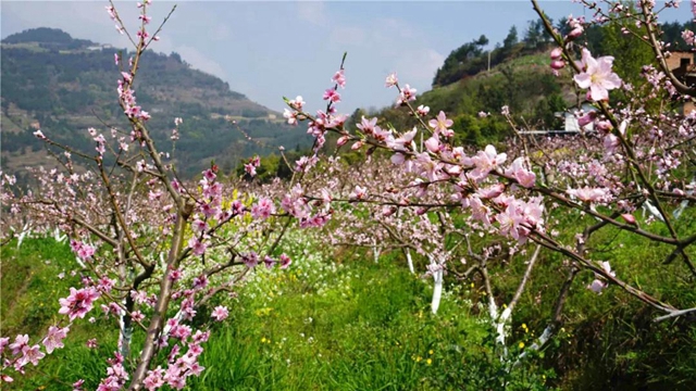 朵朵桃花緊挨,擠滿整個(gè)枝條