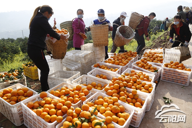 眼下,云陽20余萬畝晚熟柑橘進入豐收期,養(yǎng)鹿、平安、江口、普安等鄉(xiāng)鎮(zhèn)的晚熟柑橘喜獲豐收,預計總產(chǎn)量達到9萬噸,目前通過線上線下銷售了6萬噸,預計晚熟柑橘總產(chǎn)值達到4.5億元。(王彬彬 攝)