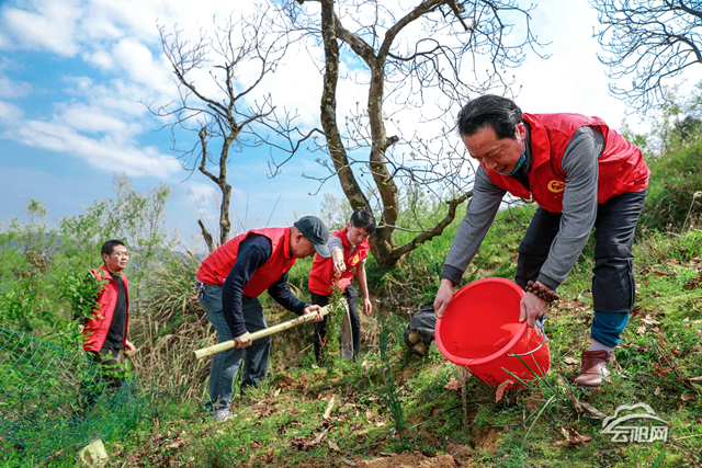 在泥溪鎮(zhèn)長(zhǎng)柏村,志愿者們兩人一組、配合默契,一起揮鋤鏟土、扶直苗木、培實(shí)新土、提桶澆水,每一道工序都一絲不茍,在大家的共同努力下,共栽下柏樹100棵??h攝影家協(xié)會(huì)的志愿者們還拿出隨身攜帶的“長(zhǎng)槍短炮”,用鏡頭記錄下云陽(yáng)人民踐行生態(tài)優(yōu)先、綠色發(fā)展理念的勞動(dòng)身影。