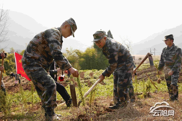 云陽網(wǎng)訊(通訊員 謝蜀云)3月31日,盤龍街道組織轄區(qū)民兵應急分隊共30余人到古桑村開展“我為祖國植10棵樹”活動。