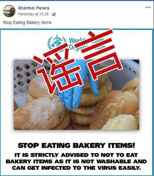 謠言2:世衛(wèi)組織稱食用烘焙食品易感染新冠病毒