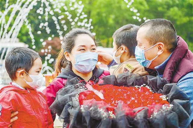 “春暖花開,終于見到你!”4月6日,重慶赴孝感支援隊(duì)首批669名隊(duì)員結(jié)束了為期14天的集中健康休養(yǎng)回家,他們中不少人已與家人分別72天。