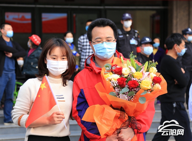 笑聲,掌聲,鮮花,擁抱……4月6日,經(jīng)過在重慶14天的休整,云陽支援湖北孝感12名醫(yī)療隊(duì)員乘專車平安回家?!皻g迎回家!”“你們辛苦了!”現(xiàn)場迎接英雄回家的人們沸騰了。