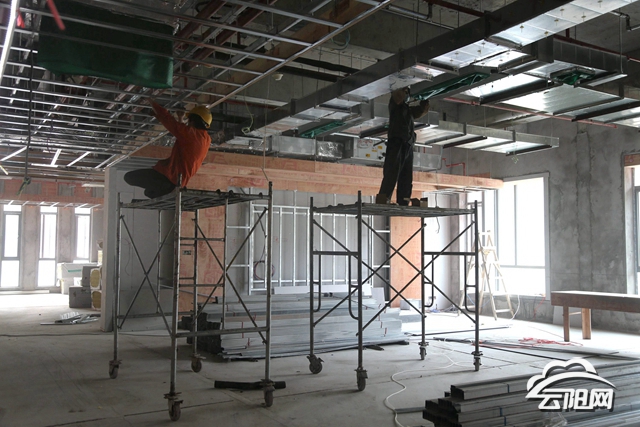 云陽網(wǎng)訊(記者 何競嘉 付驁)4月8日,北部新區(qū)迎賓大道內(nèi)側(cè)的云商大廈酒店工程施工現(xiàn)場,工人進進出出,忙著進行內(nèi)部墻面粉飾、防潮板安裝……記者了解到,該酒店整體項目已進入精裝修階段,今年十月開業(yè)迎賓。