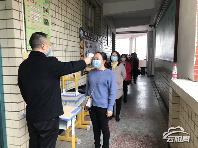演練中,教師代替學(xué)生,根據(jù)學(xué)校實(shí)際情況設(shè)置了不同的場(chǎng)景?!皫熒钡叫H胄#iT口消毒,“師生”入校,有序通過(guò)測(cè)溫通道測(cè)溫,并檢查詢問(wèn)登記“學(xué)生”健康狀況。入校后,“學(xué)生”間距1米排隊(duì),按照各班教學(xué)樓位置通過(guò)指定線路走到各個(gè)教室。該校教師還對(duì)“學(xué)生”晨午檢、“學(xué)生”進(jìn)入教室戴口罩上課、教室消毒、排隊(duì)取餐、就餐進(jìn)行了演練。