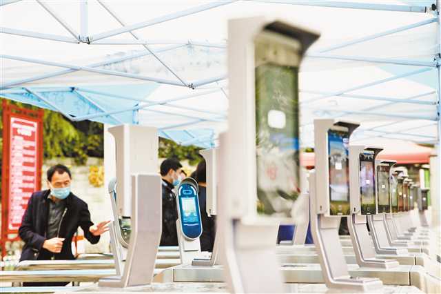 四月十八日,黔江中學(xué)工作人員對(duì)學(xué)校門(mén)口的紅外線測(cè)溫儀進(jìn)行檢查。特約攝影 楊敏