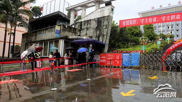 學生們陸續(xù)來到校門口,在老師的指引下,保持間隔依次排隊入校,按照地面入校通道標識,經(jīng)過紅外線測溫檢測后,刷臉進入校園,現(xiàn)場秩序有條不紊?,F(xiàn)場老師也在不停地提醒著保持間距,同時按照信息表核驗每位進校學生的渝康碼,并對學生所有的行李進行消毒。