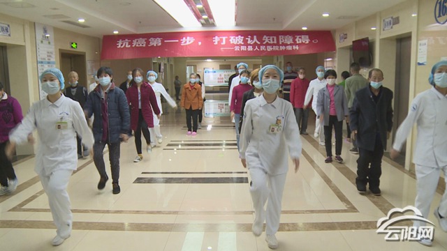 “平時(shí)沒怎么動(dòng),今天來活動(dòng)一下,對(duì)他康復(fù)有好處?!被颊呒覍偻踝跃照f。在醫(yī)院腫瘤科住院病區(qū),正在開展腫瘤患者康復(fù)訓(xùn)練活動(dòng),患者及家屬在醫(yī)護(hù)人員帶領(lǐng)下做口鼻咽操、肺部康復(fù)訓(xùn)練操。在門診大廳,腫瘤科、疼痛科、消化內(nèi)科等科室醫(yī)護(hù)人員有序開展義診活動(dòng),為前來咨詢的患者解惑答疑;腫瘤門診的腫瘤防治科普講座,以“認(rèn)識(shí)肺癌、健康生活”、“認(rèn)識(shí)PICC”為主題,向大家宣講普及相關(guān)健康知識(shí)。